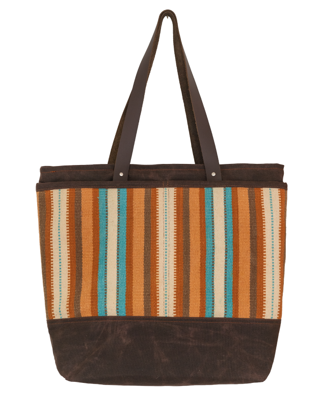 A structured, utility-minded tote, handmade using distinctive textiles and overhauled with premium materials. Built with a waxed canvas base and four exterior pockets, it’s made for those who carry a little more or like to stay organized. Perfect for market runs, road trips, or wrangling your daily essentials with extra order. This bag is one-of-a-kind. You won’t encounter another exactly like it.